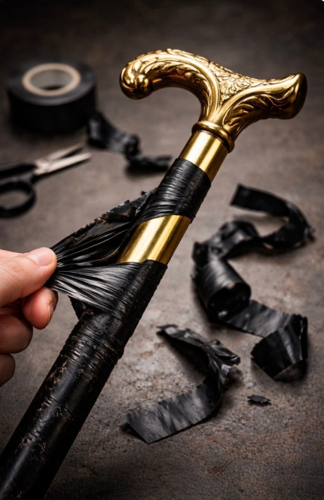 One day my mother took a closer look at the cane. She discovered that the reason why the cane was black was because it was wrapped with electrical tape. After all those years, my mother felt the need to investigate and she started peeling away the tape. She unraveled the entire layer covering the cane from top to bottom.